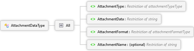 <xs:complexTypename="AttachmentDataType"xmlns:xs="http://www.w3.org/2001/XMLSchema"><xs:all><xs:elementname="AttachmentType"type="attachmentTypeType"><xs:annotation><xs:documentation><pxmlns="http://Hps.Exchange.PosGateway">Identifies the attachment type; see the associated Type enumerations for specific values supported.</p></xs:documentation></xs:annotation></xs:element><xs:elementname="AttachmentData"><xs:annotation><xs:documentation><pxmlns="http://Hps.Exchange.PosGateway">The base64 encoded attachment data.</p><pxmlns="http://Hps.Exchange.PosGateway"/><pxmlns="http://Hps.Exchange.PosGateway"><strong>Note:</strong> The code limits the maximum size beyond the limit in the schema. The maximum document and image data size allowed is 300K which includes the encoding overhead.</p></xs:documentation></xs:annotation><xs:simpleType><xs:restrictionbase="xs:string"><xs:maxLengthvalue="600000"/></xs:restriction></xs:simpleType></xs:element><xs:elementname="AttachmentFormat"type="attachmentFormatType"><xs:annotation><xs:documentation><pxmlns="http://Hps.Exchange.PosGateway">Identifies the format of the attachment data; see the associated Type enumerations for specific values supported.</p></xs:documentation></xs:annotation></xs:element><xs:elementname="AttachmentName"minOccurs="0"><xs:annotation><xs:documentation><pxmlns="http://Hps.Exchange.PosGateway">A merchant assigned name for the associated attachment.</p></xs:documentation></xs:annotation><xs:simpleType><xs:restrictionbase="xs:string"><xs:maxLengthvalue="150"/></xs:restriction></xs:simpleType></xs:element></xs:all></xs:complexType>