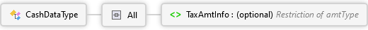 <xs:complexType name="CashDataType" xmlns:xs="http://www.w3.org/2001/XMLSchema"> <xs:all> <xs:element name="TaxAmtInfo" type="amtType" minOccurs="0" /> </xs:all> </xs:complexType>