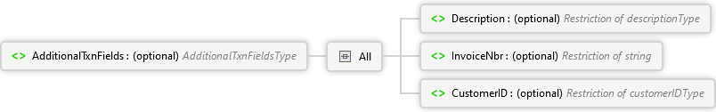 AdditionalTxnFields optional AdditionalTxnFieldsType Complex Type