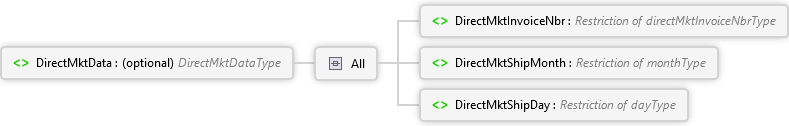 <xs:element name="DirectMktData" type="DirectMktDataType" minOccurs="0" xmlns:xs="http://www.w3.org/2001/XMLSchema"> <xs:annotation> <xs:documentation> <p xmlns="http://Hps.Exchange.PosGateway">Direct marketing data; eCommerce</p> </xs:documentation> </xs:annotation> </xs:element>