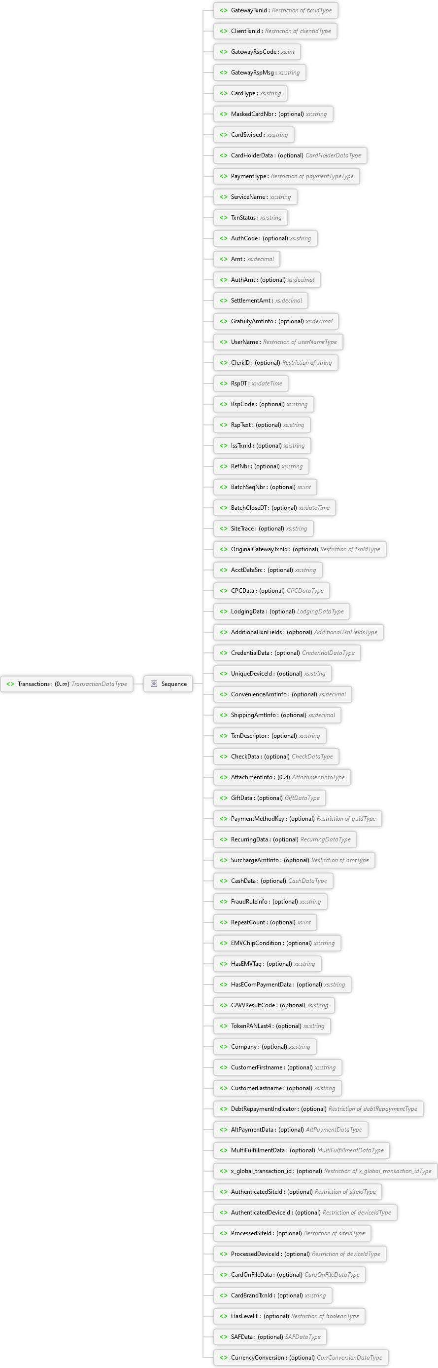 Note: If the data was defined in the request or response, a description has not been added here; only fields that are being introduced in this response have additional detail added. Typically, these will be fields that drive business logic that can be assumed at the time of the transaction or they are calculated at the time of the report.