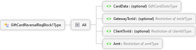 Amt Element ClientTxnId Element GatewayTxnId Element CardData Element All GiftCardReversalReqBlock1Type Complex Type