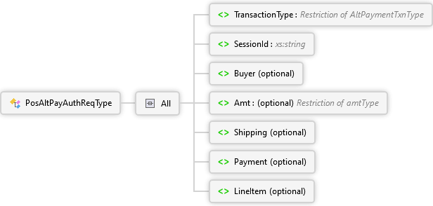 LineItem Element Payment Element Shipping Element Amt Element Buyer Element SessionId Element TransactionType Element All PosAltPayAuthReqType Complex Type