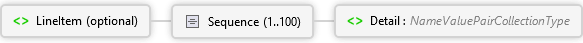 <xs:elementname="LineItem"minOccurs="0"xmlns:xs="http://www.w3.org/2001/XMLSchema"><xs:annotation><xs:documentation><pxmlns="http://Hps.Exchange.PosGateway">Line Item purchase information for the authorization</p></xs:documentation></xs:annotation><xs:complexType><xs:sequencemaxOccurs="100"><xs:elementname="Detail"type="NameValuePairCollectionType"><xs:annotation><xs:documentation>Detail Information</xs:documentation></xs:annotation></xs:element></xs:sequence></xs:complexType></xs:element>