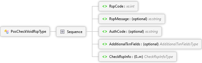 CheckRspInfo Element AdditionalTxnFields Element AuthCode Element RspMessage Element RspCode Element Sequence PosCheckVoidRspType Complex Type
