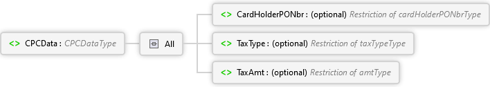 <xs:element name="CPCData" type="CPCDataType" xmlns:xs="http://www.w3.org/2001/XMLSchema"> <xs:annotation> <xs:documentation> <p xmlns="http://Hps.Exchange.PosGateway">Corporate purchasing card data</p> </xs:documentation> </xs:annotation> </xs:element>