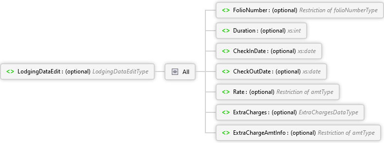 ExtraChargeAmtInfo Element ExtraCharges Element Rate Element CheckOutDate Element CheckInDate Element Duration Element FolioNumber Element All LodgingDataEdit Element