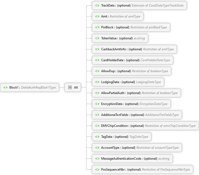 Portico Schema > PosDebitAuthReqType Complex Type : Block1 Element