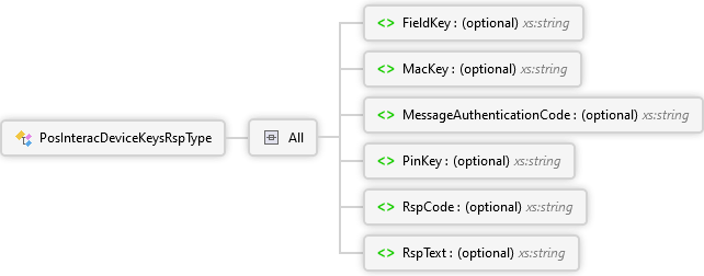 RspText Element RspCode Element PinKey Element MessageAuthenticationCode Element MacKey Element FieldKey Element All PosInteracDeviceKeysRspType Complex Type