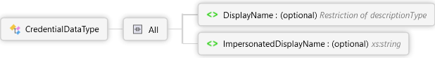 <xs:complexType name="CredentialDataType" xmlns:xs="http://www.w3.org/2001/XMLSchema"> <xs:all> <xs:element name="DisplayName" type="descriptionType" minOccurs="0"> <xs:annotation> <xs:documentation> <p xmlns="http://Hps.Exchange.PosGateway">User display name</p> </xs:documentation> </xs:annotation> </xs:element> <xs:element name="ImpersonatedDisplayName" type="xs:string" minOccurs="0"> <xs:annotation> <xs:documentation> <p xmlns="http://Hps.Exchange.PosGateway">Impersonated user display name</p> </xs:documentation> </xs:annotation> </xs:element> </xs:all> </xs:complexType>